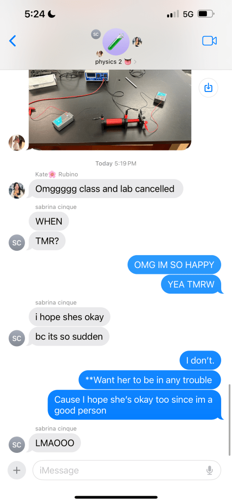 - Got to finish my Chem Lab early and left 3 hours before everyone else