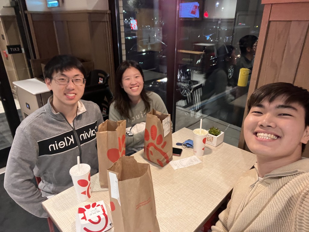 - Got dinner with Zach, Isaiah, and Jaisnav