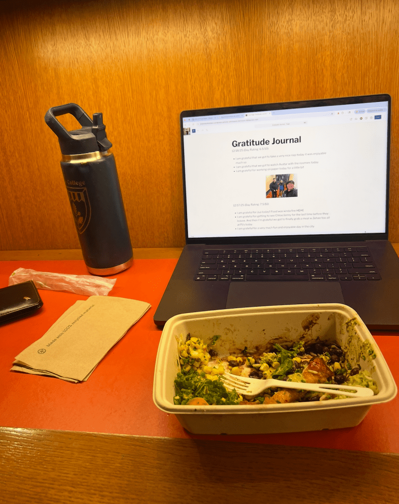 - I am grateful for getting to see Chloe/Jenny for the last time before they leavee. And then I’m grateful we got to finally grab a meal w Zehao too all at PJ’s today